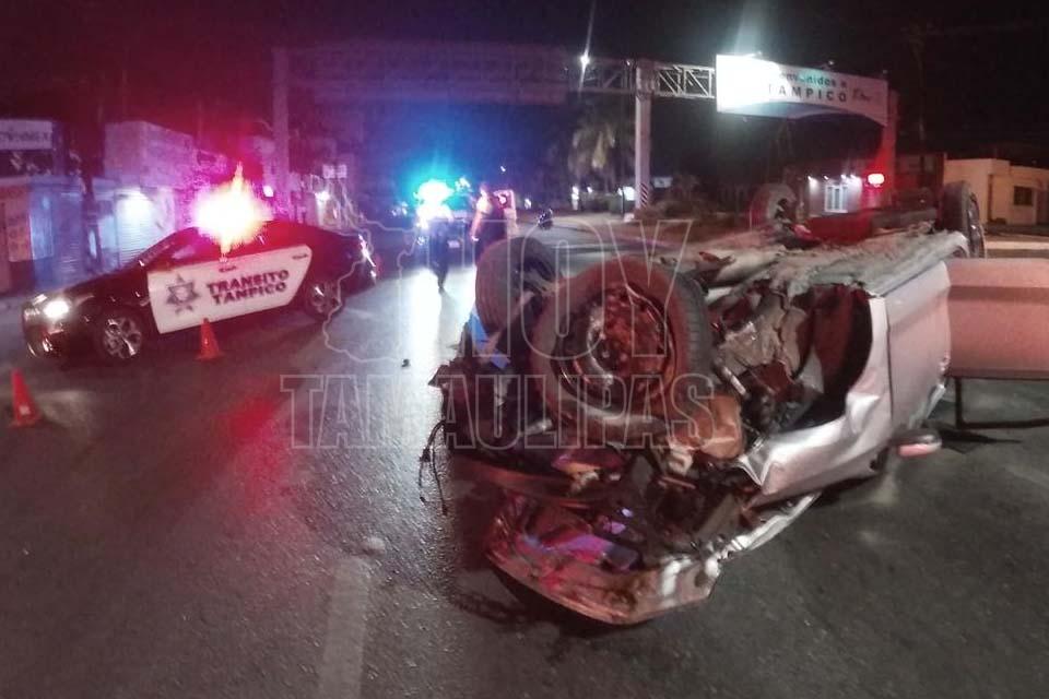 En Tampico: ebrio vuelca vehículo prestado y da varias volteretas