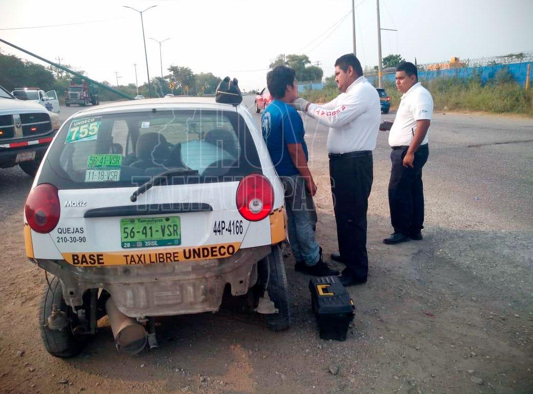 Taxista ebrio choca contra luminaria y resulta lesionado en Altamira