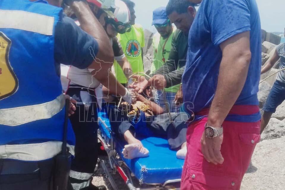 Hombre se queda atorado todo un día en escolleras de Miramar