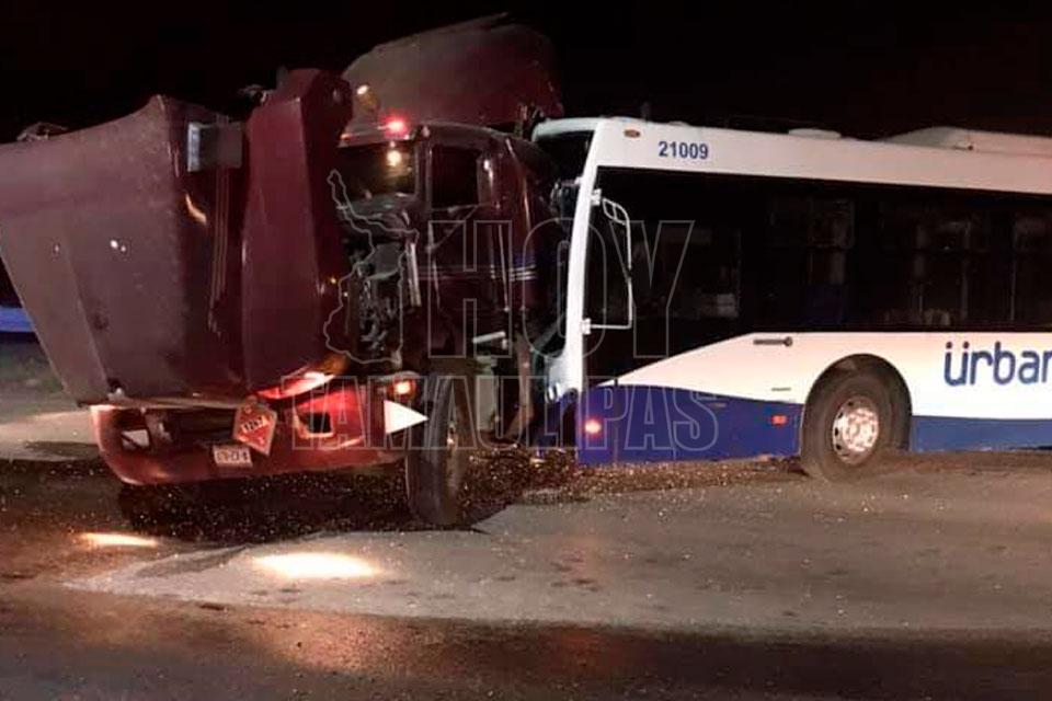 Autobús urbano choca con tráiler y motociclista resulta herido en Altamira