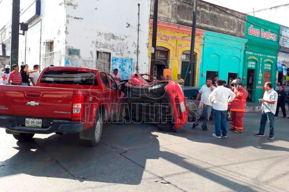Choque con volcadura deja tres lesionados en Tampico
