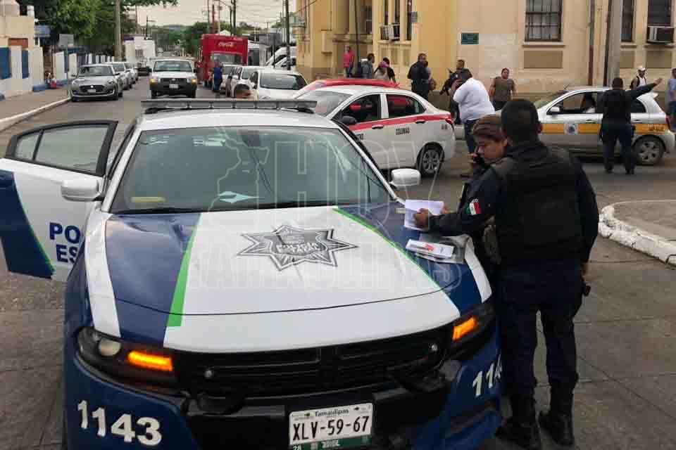 Patrulla de la PEA se pasa alto y es chocada por carro de ruta en Tampico