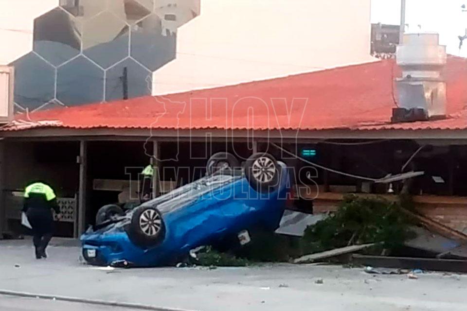 Vuelca y choca contra restaurante en Tampico