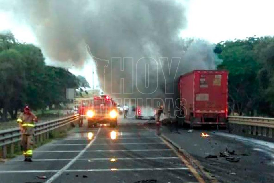 Choque deja un lesionado y un tráiler incendiado en Altamira