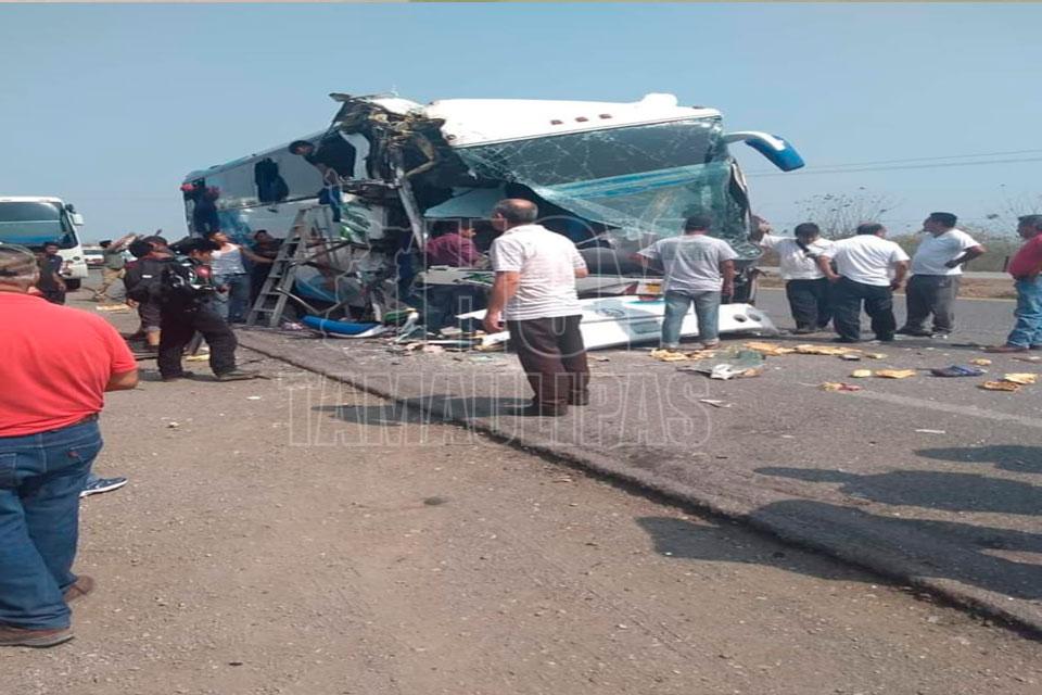 Choca autobús turístico con tráiler en Altamira; hay 10 lesionados