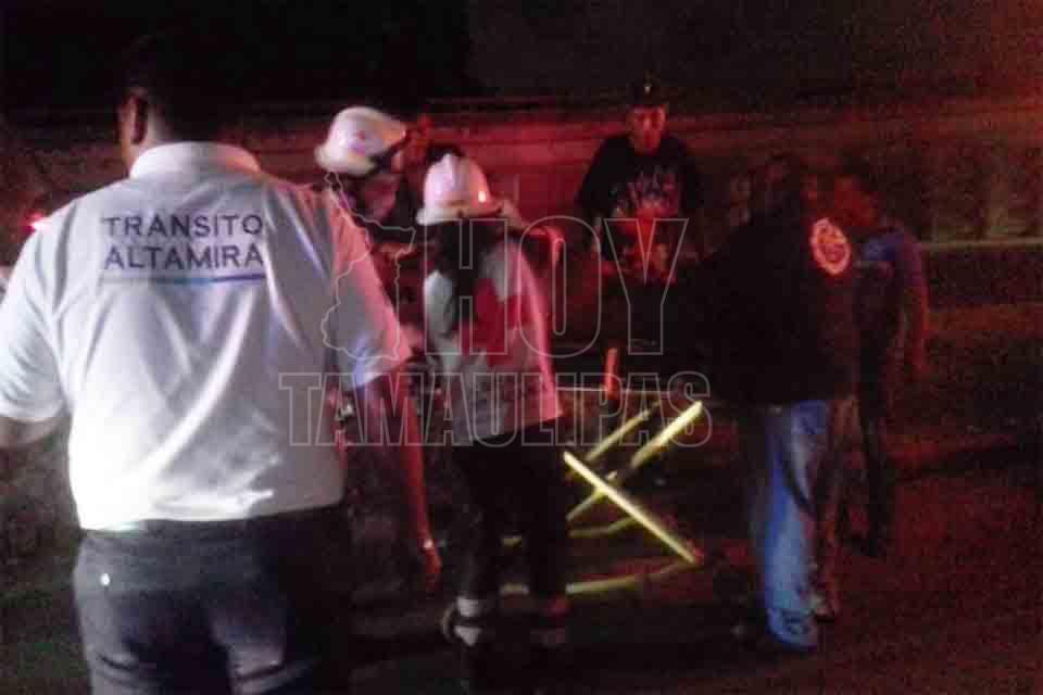 Queda mal herido conductor de camioneta al volcar en Altamira