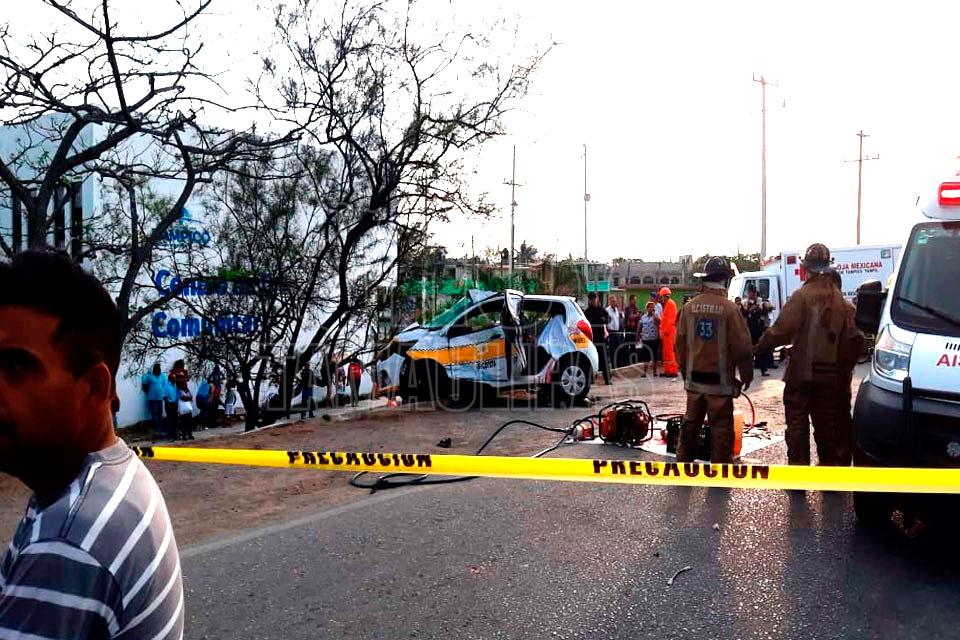 Tres muertos al chocar taxi contra autobús en Tampico