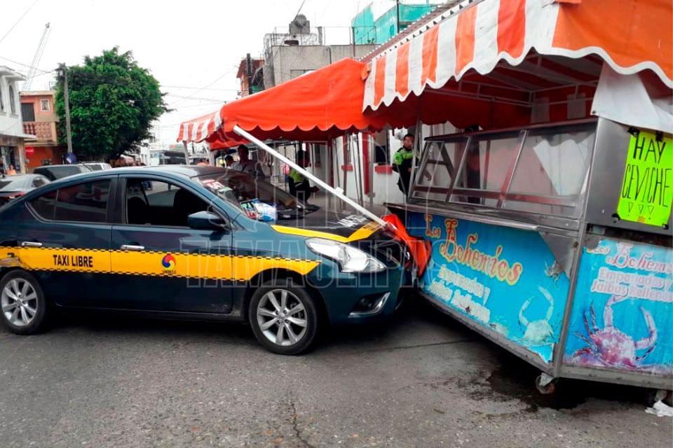 Taxi es chocado e impacta un carrito de venta de ceviche en Tampico