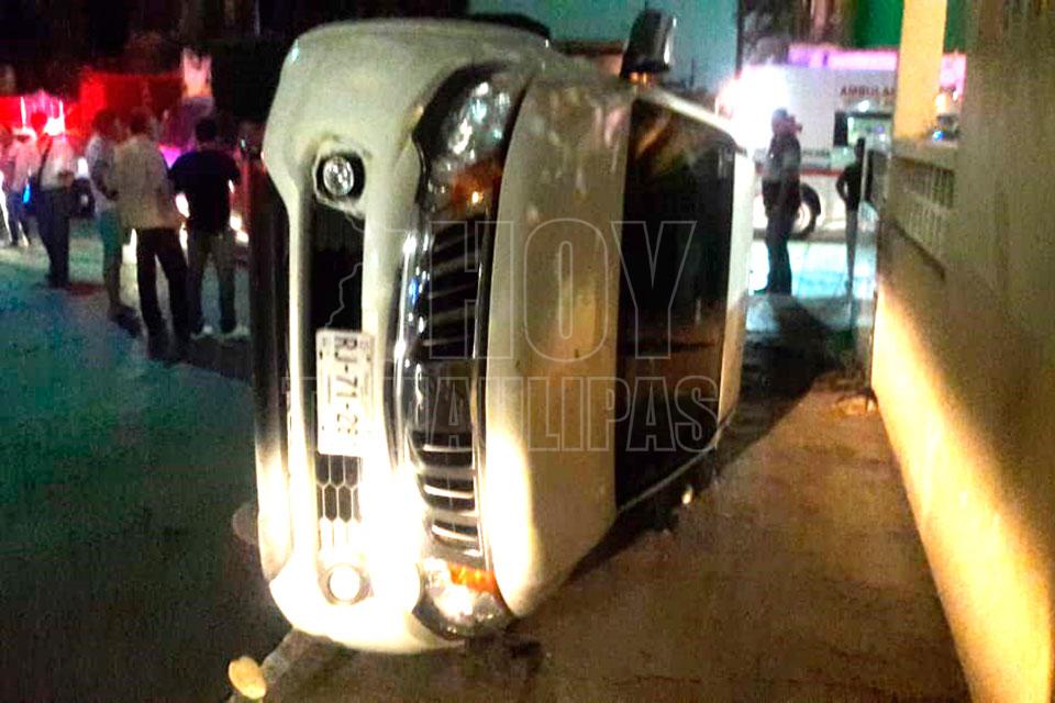 Choque y volcadura en la colonia Tamaulipas de Tampico