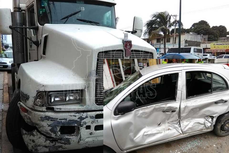 Tráiler derrapa e impacta automóvil en el norte de Tampico