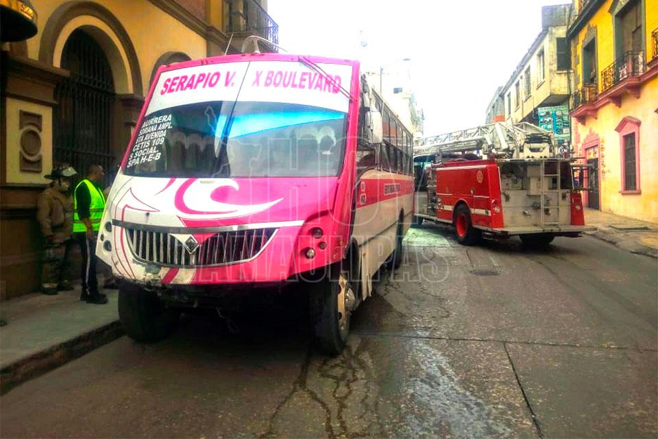 Incendio de balatas de autobús moviliza a Bomberos de Tampico