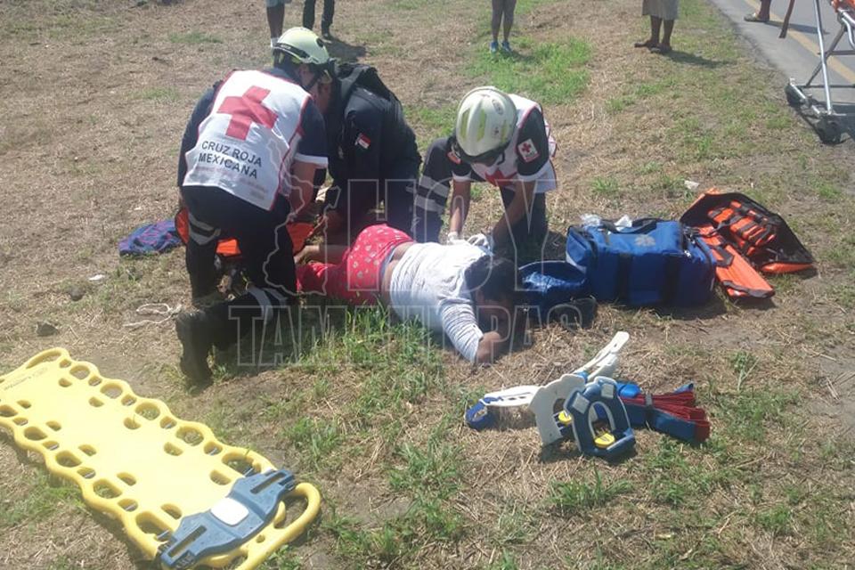 Pareja en motocicleta choca contra árbol en acceso a Tampico