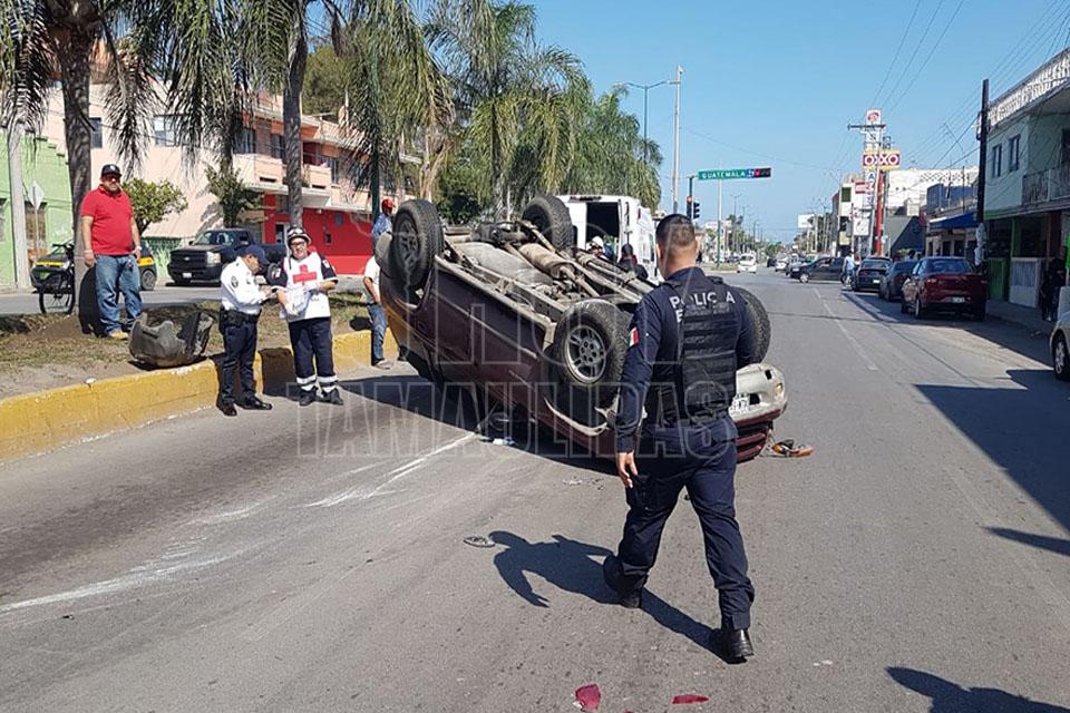 Vuelca camioneta en Ciudad Madero; una lesionada