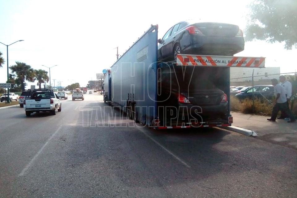 Por poco se incendia nodriza con carros nuevos en Tampico