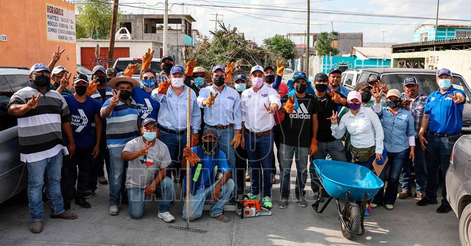 Rehabilitan Enrique Rivas y su equipo calles en Villas de San Miguel