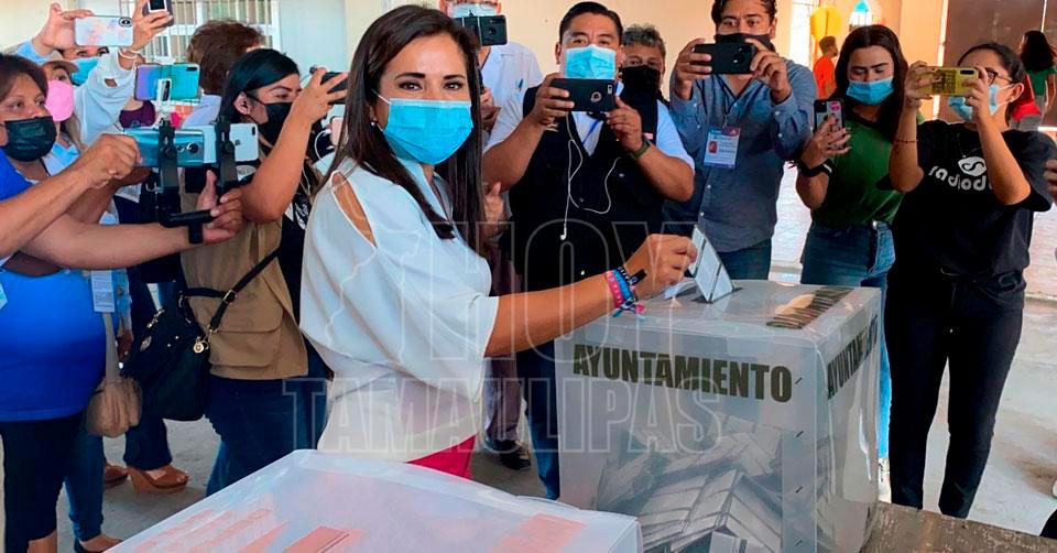 Vota Yahleel Abdala en Nuevo Laredo; llama a la población a votar