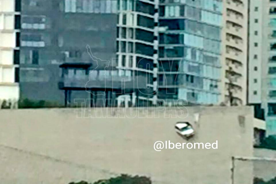 Camioneta queda colgando en estacionamiento de la Ciudad de México