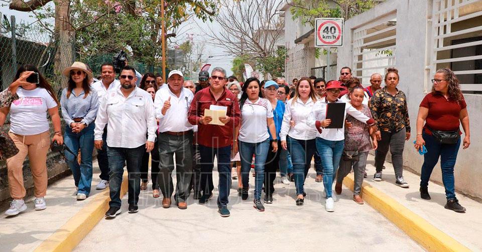 Entrega Armando Martínez vialidades pavimentadas en colonia Lomas de Altamira