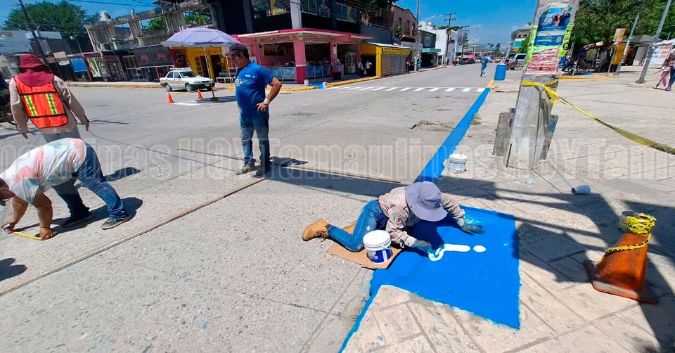 Pintan señaléticas en vialidades del primer cuadro de El Mante