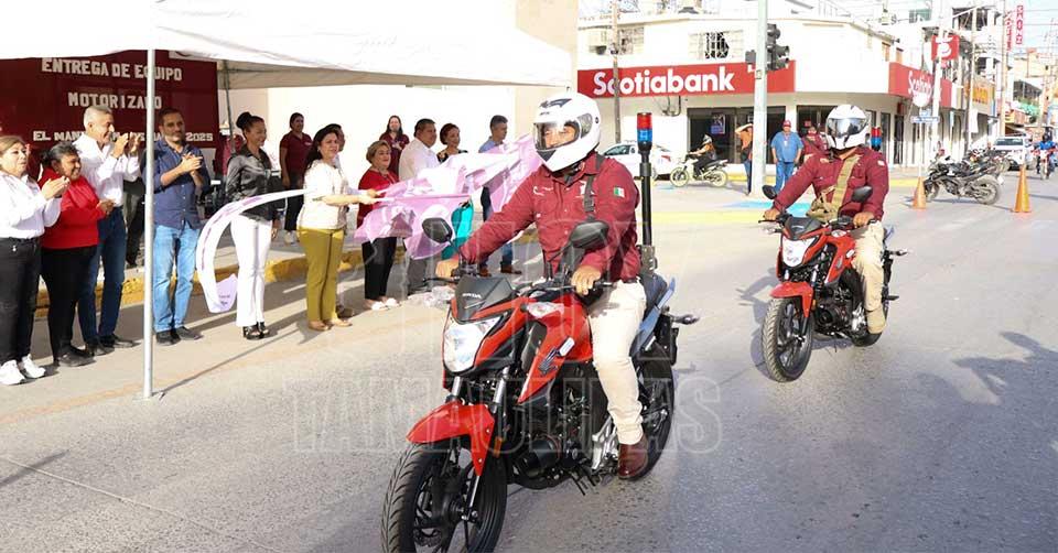 Equipa Patty Chío a elementos de Tránsito de El Mante con motopatrullas