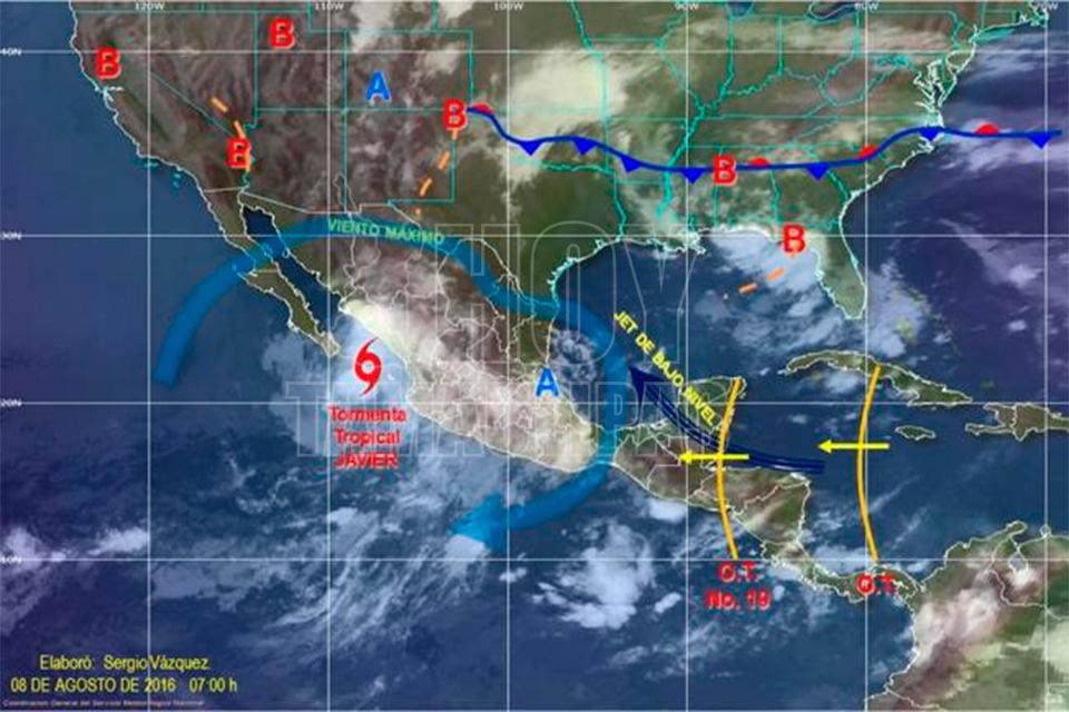 Tormenta tropical Javier avanza al noreste de la República mexicana