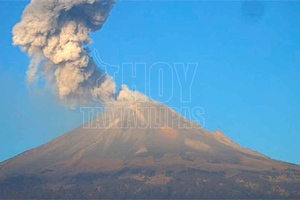 Volcán Popocatépetl emite fumarola de dos mil metros de altura