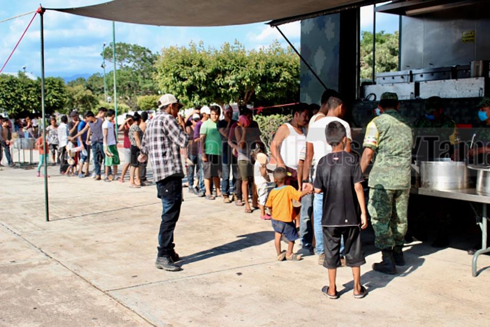 Ejército brinda alimentos a migrantes varados en Mapastepec, Chiapas