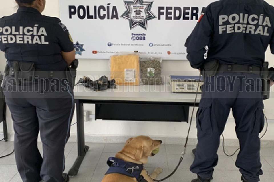 Binomio canino intercepta paquete con droga en aeropuerto de Mérida