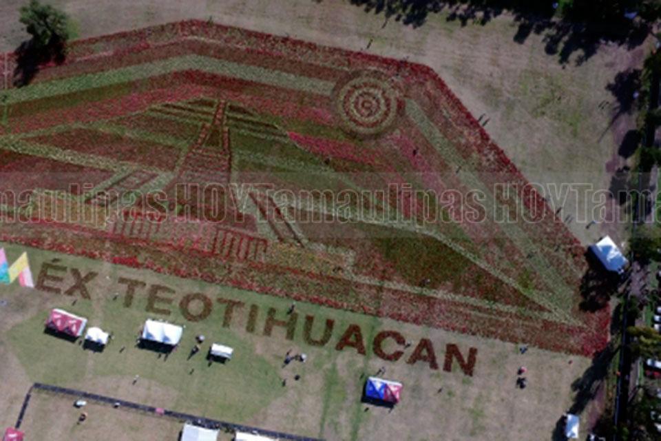 Récord mundial de tapete floral representa la grandeza de Teotihuacán