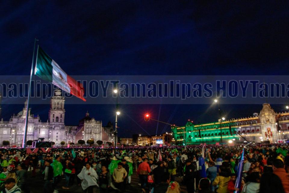 Arman chilangos y visitantes fiesta mexicana frente a Palacio Nacional
