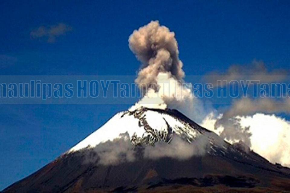 Popocatépetl amanece con nieve y fumarola de vapor de agua