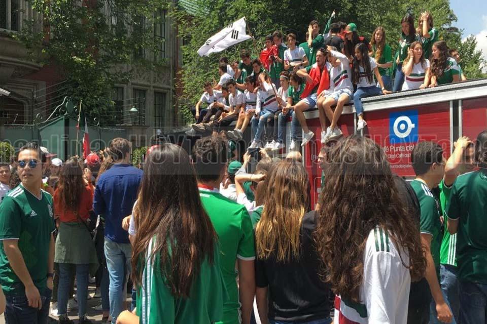 Mexicanos festejan en las afueras de la Embajada de Corea