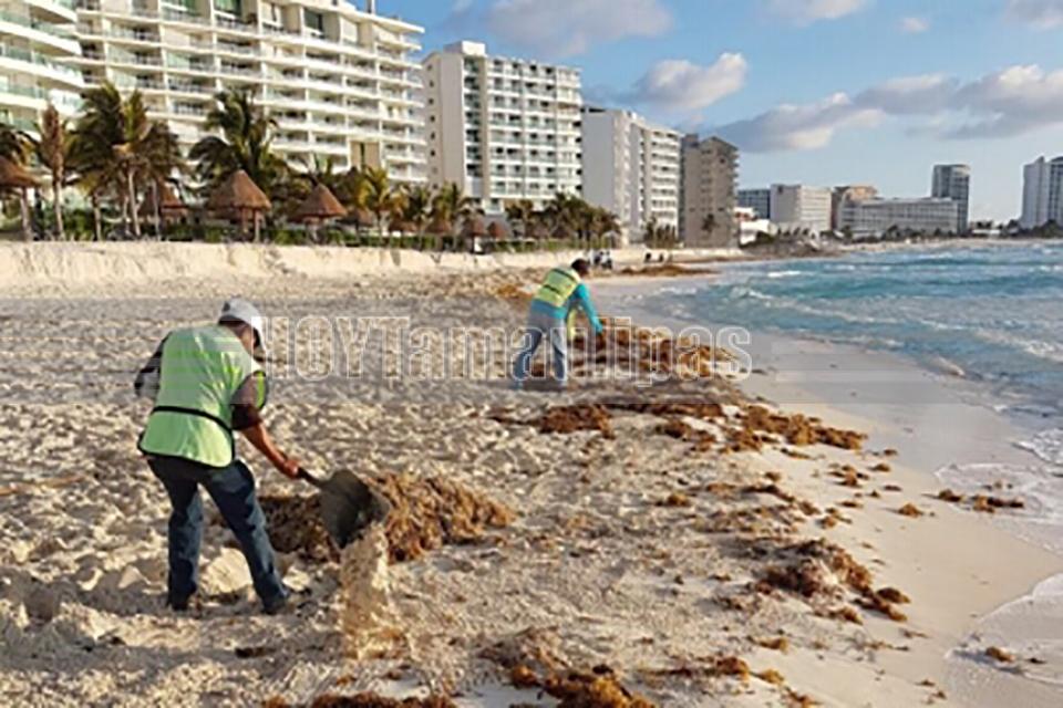 Retiran de playas de Cancún más de 600 metros cúbicos de sargazo