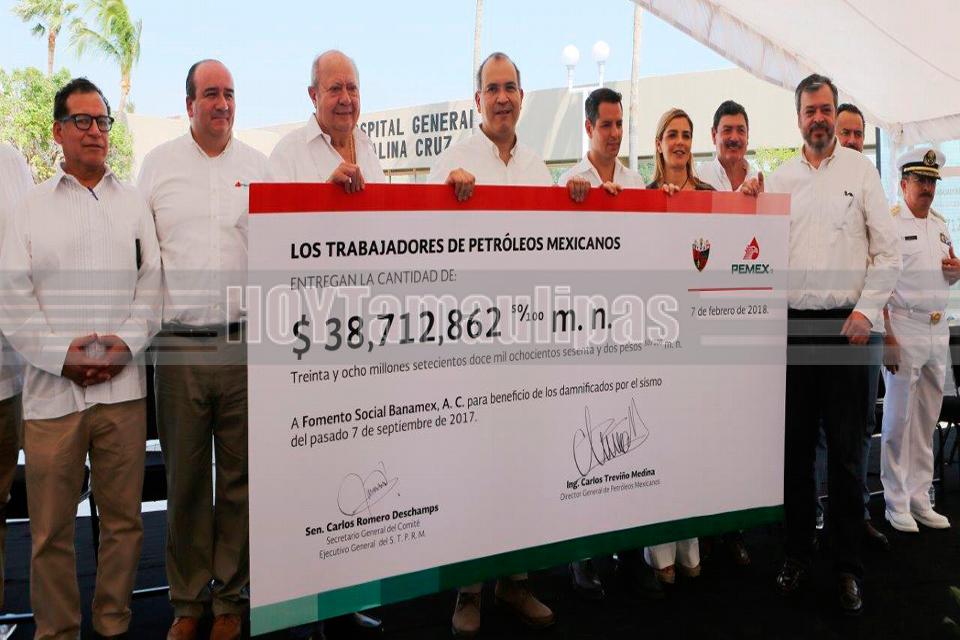 Trabajadores petroleros donan casi 39 MDP para la reconstrucción de viviendas en Oaxaca