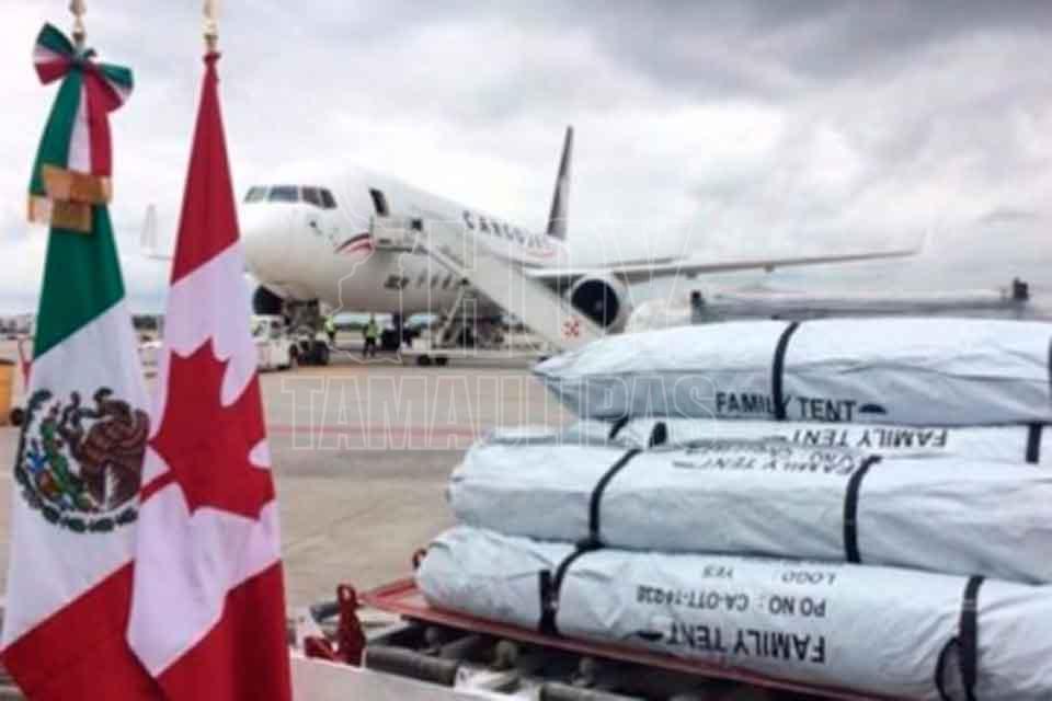 Llegan de Canadá tiendas de campaña para damnificados por terremoto