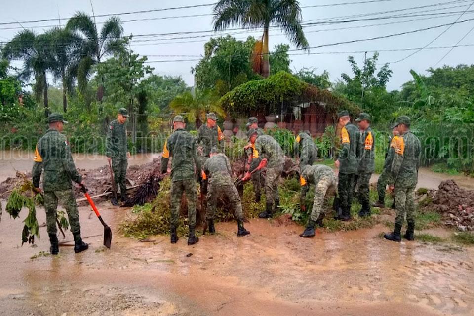 Aplica Sedena plan de auxilio por lluvias en San Pedro Pochutla, Oaxaca
