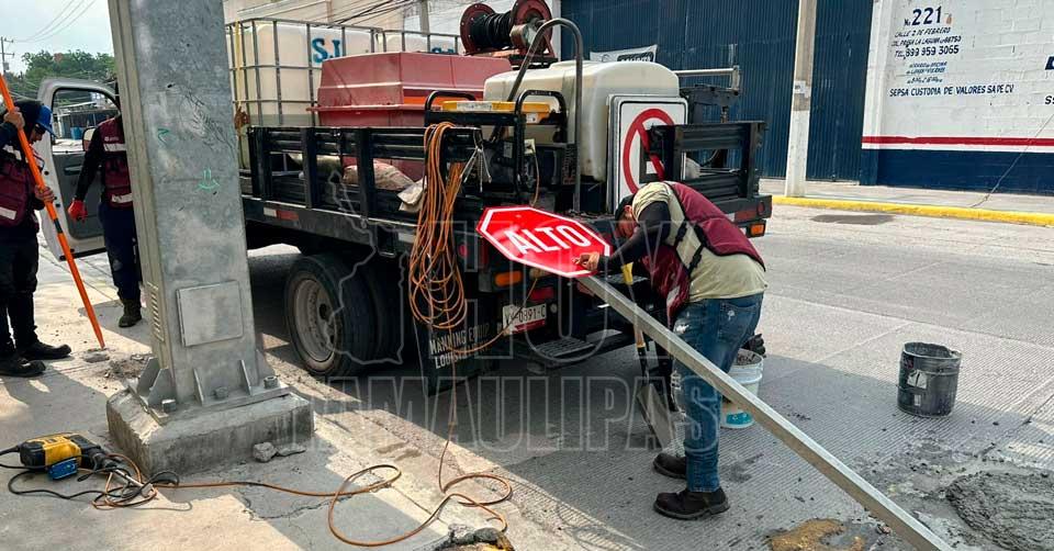 Refuerza Gobierno de Reynosa trabajos de señalización vial para mayor seguridad