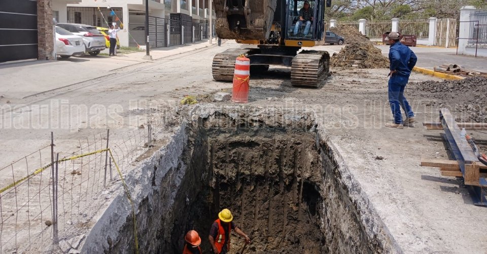 Inicia pavimentación en obra de rehabilitación de colector tras socavón en Ciudad Madero