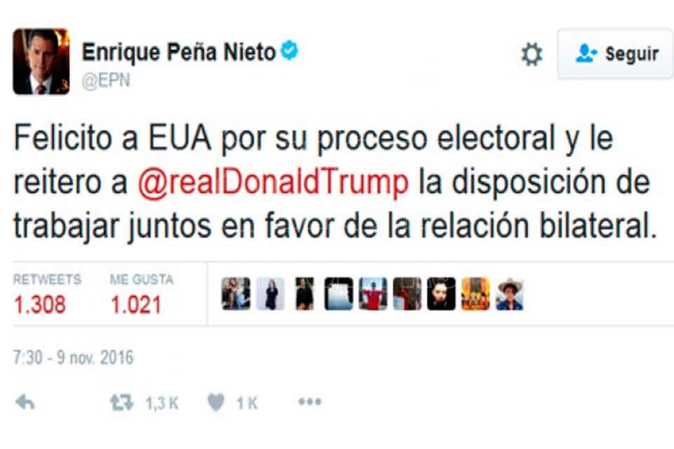 Peña Nieto felicita a pueblo estadunidense por proceso electoral