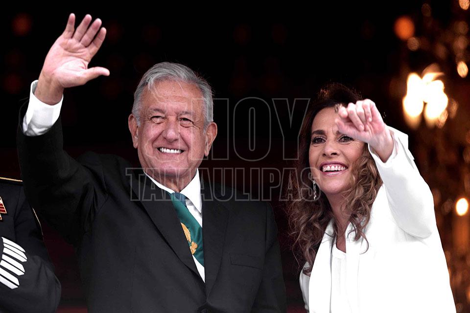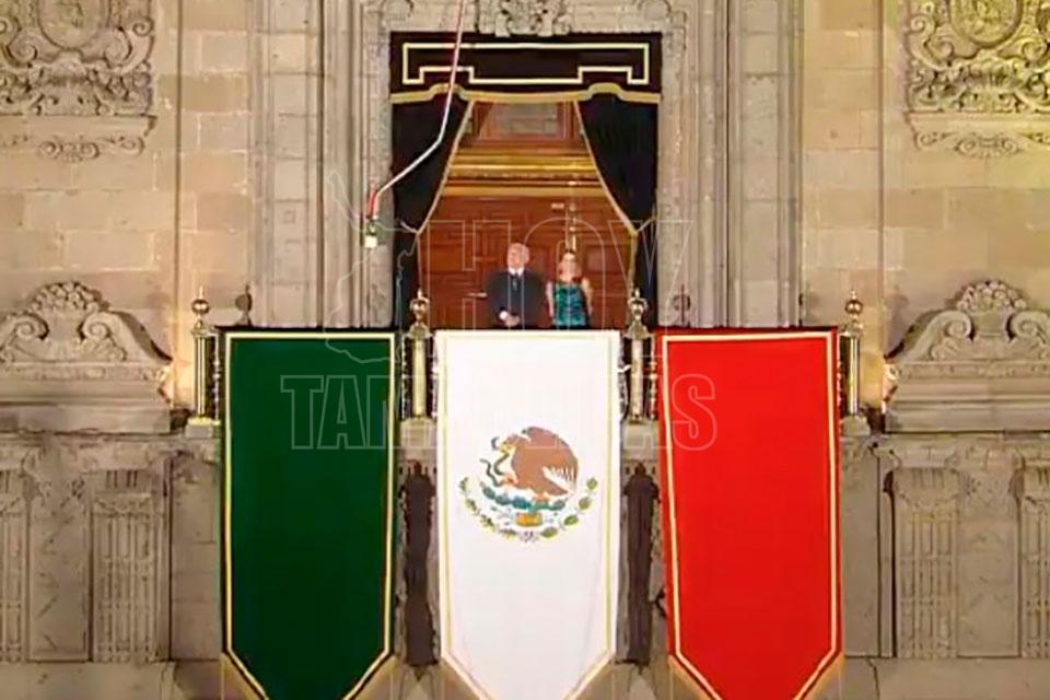 Con "vivas" a los héroes anónimos y a la democracia, AMLO da el Grito