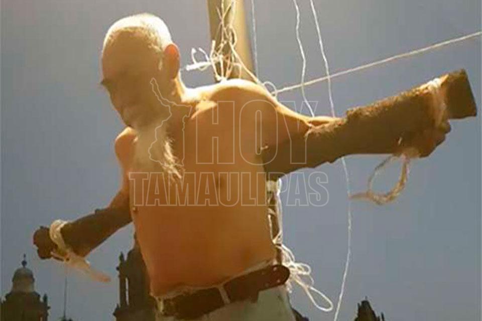 Hombre se amarra frente a Palacio Nacional para pedir audiencia con López Obrador