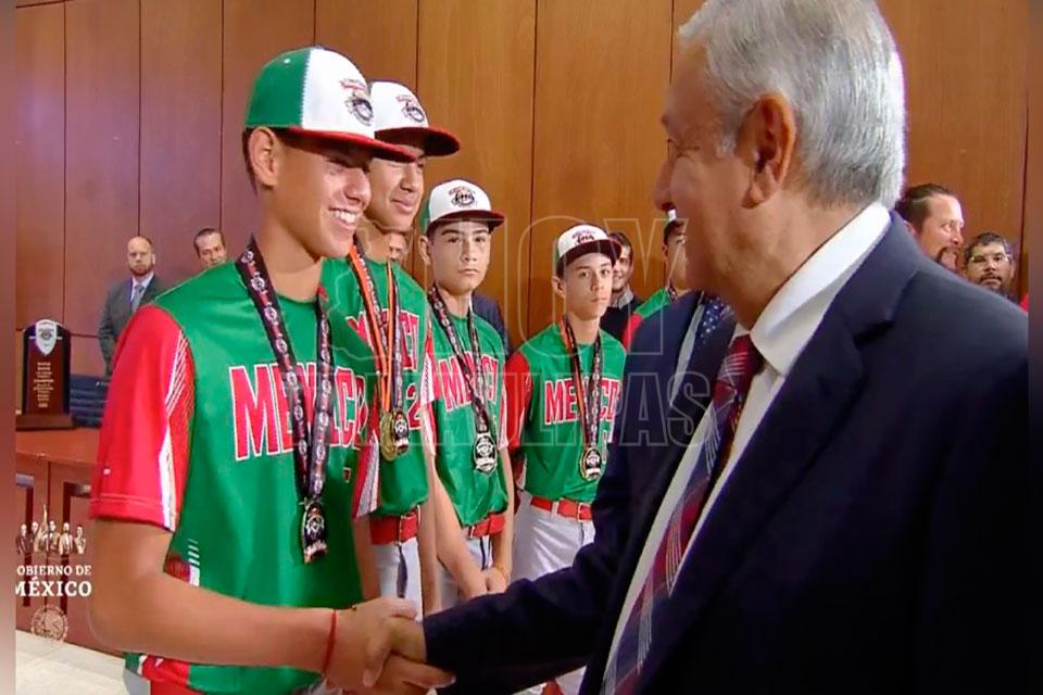 López Obrador recibe a beisbolistas infantiles ganadores del Cal Ripken