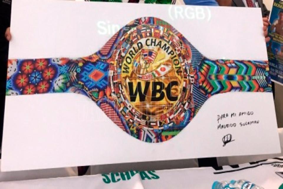 Obra huichol plasma “El camino de la vida”, cinturón que se entregará a “Canelo” o Chávez Jr.