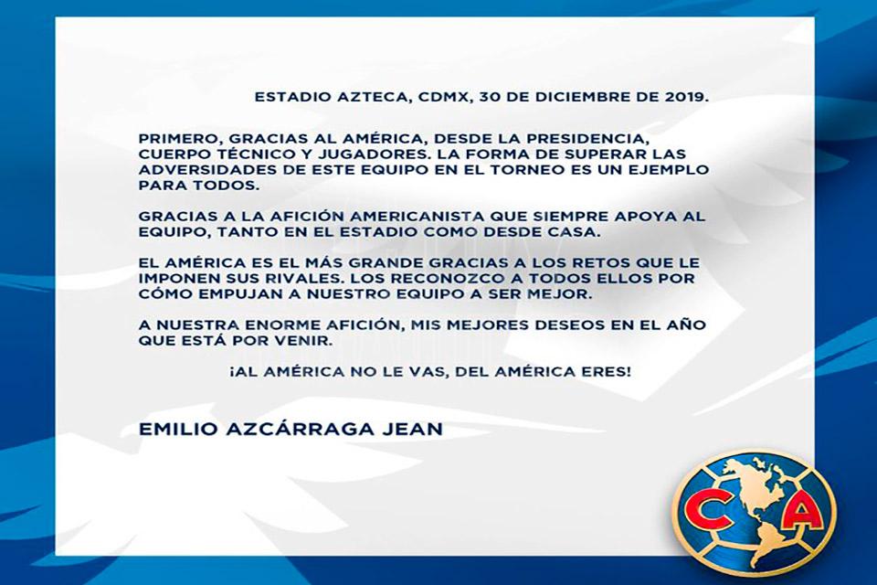 Dueño del América destaca grandeza del equipo y agradece a su afición
