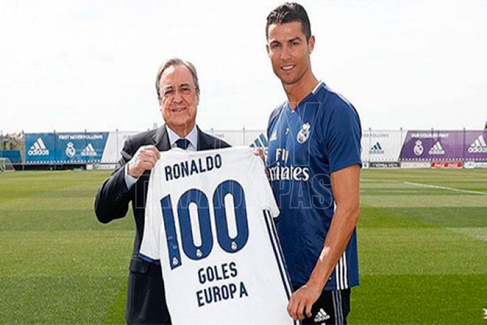 Cristiano recibe camiseta conmemorativa por 100 goles