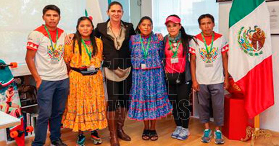 Ana Gabriela Guevara se reúne con corredores rarámuris en la CONADE
