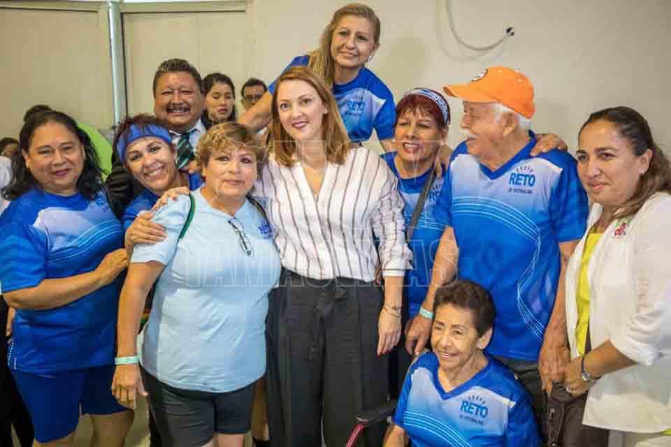 Convive Mariana Gómez con abuelitas y abuelitos del Primer Campamento Cultural Deportivo