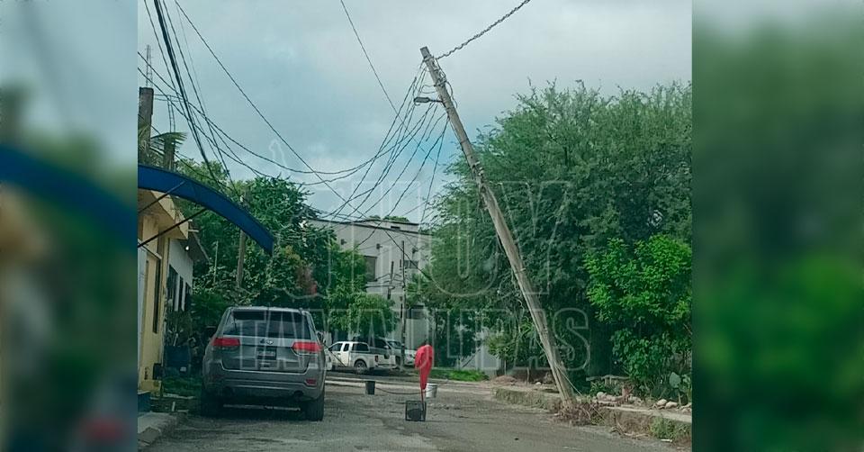 CFE ignora reportes; vecinos de Victoria temen que poste de la luz se desplome