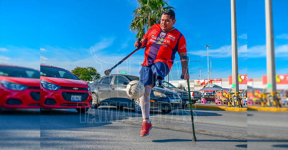 Domina el balón en muletas y con una sola pierna en cruceros de Victoria; soñó con ser jugador profesional