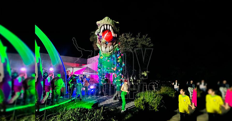 Encienden el “Dino Navideño” en el Tamux, en medio de villancicos, bailes y Santa Claus